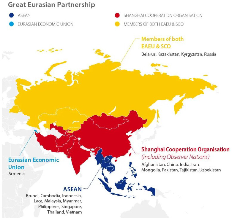 Le grand partenariat eurasiatique (Association des nations de l’Asie du Sud-Est, Union économique eurasiatique, Organisation de coopération de Shanghai)