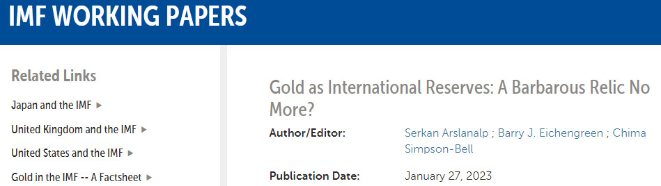 Voici ce que j’écrivais à l’époque : « Si vous voulez mon avis, il semble que certaines banques centrales aient tiré les leçons du gel par l’Occident des réserves de devises russes en dollars, en euros, en livres et en yens au printemps 2022. C’est d’ailleurs ce qu’indiquait le FMI lui-même dans un rapport publié le 27 janvier 2023. »