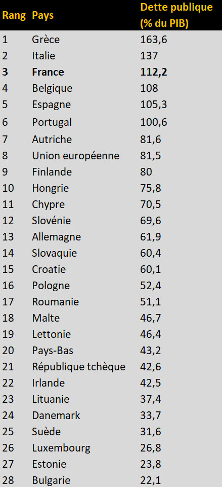 La France n’est donc pas le pays européen le plus endetté, mais elle figure en belle place sur le podium, devant d’autres « poids lourds » latins, et bien sûr devant les fourmis de l’Europe germanique et de l’Europe du Nord.