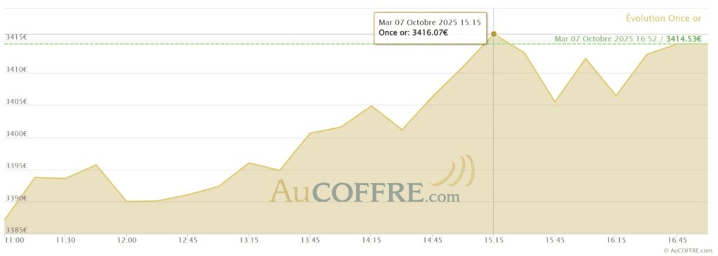 Mardi 7 octobre 2025 : 3 984 dollars et 3 416 euros l’once d’or